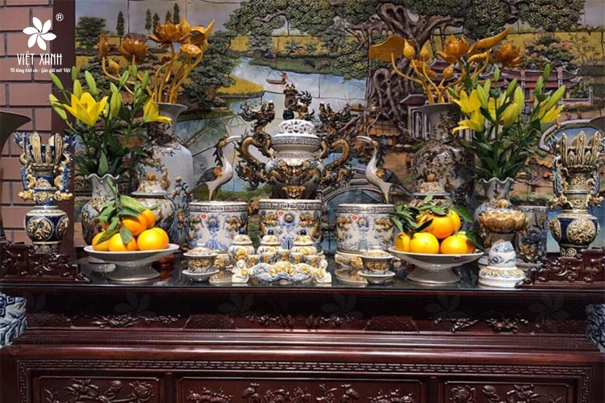 Đỉnh đồng và hạc thờ (Bộ tam sự/ngũ sự): Tùy chọn, thường dùng cho bàn thờ kích thước lớn để tăng sự uy nghi.